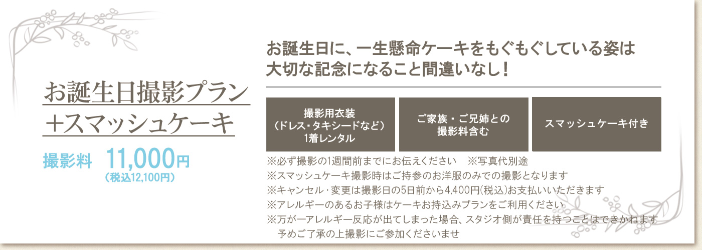 お子さまへのプレゼントなどお持込み頂ければ、より素敵なお写真がのこせます。
